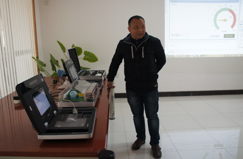 物聯(lián)網(wǎng)負責(zé)人李杰正在給學(xué)校領(lǐng)導(dǎo)講解智能農(nóng)業(yè)實驗室