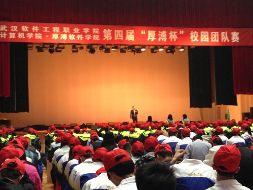 校學(xué)工處副處長(zhǎng)張水新宣布:武漢軟件工程職業(yè)學(xué)院計(jì)算機(jī)學(xué)院、厚溥軟件學(xué)院第四屆“厚溥杯”校園團(tuán)隊(duì)賽正式開始。